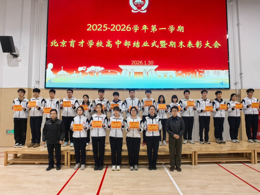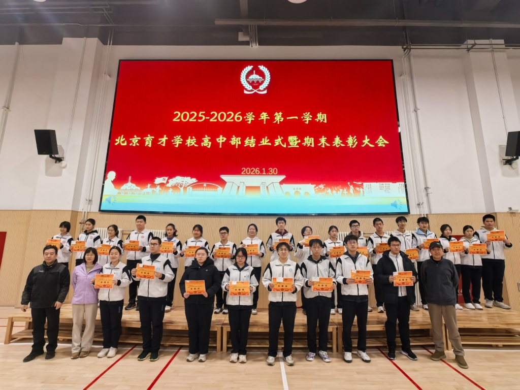 北京育才学校2025-2026学年第一学期高中部结业式2026年1月30日上午,北京育才学校高中部师生在望岳体育馆隆重集会,举行“2025-2026学年第一学期高中部结业式暨“学习领跑者,出色育才人”期末表彰活动。参与本次表彰仪式的领导有寿延副校长、石红海主任、贾春花主任、贺卫军主任。颁奖仪式由张莹主任主持。
