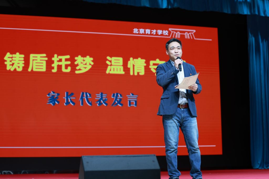 家长代表郭子宁父亲郭晓年先生深情发言。他代表全体家长向辛勤付出的老师们致以诚挚谢意,同时向孩子们传递最温暖的期许。他表示,中考是成长的重要战役而非全部战场,希望孩子们脚踏实地、全力以赴,不必纠结结果,每一分付出都值得肯定;也承诺家长们将做好“后勤部长”,少责备、多陪伴,做孩子最温暖的港湾。