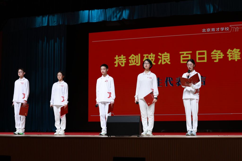 春风催奋进,少年启新程。在这孕育希望的美好时节,北京育才学校2026届九年级全体师生、部分家长齐聚校园,隆重举行“百日砺剑 跃马踏征程,青春燃梦 破浪济长风”中考百日誓师大会。距离2026年学考仅剩100天的关键节点,大家以热血为墨、以誓言为帆,共同吹响冲刺号角,见证青春逐梦的庄严时刻。