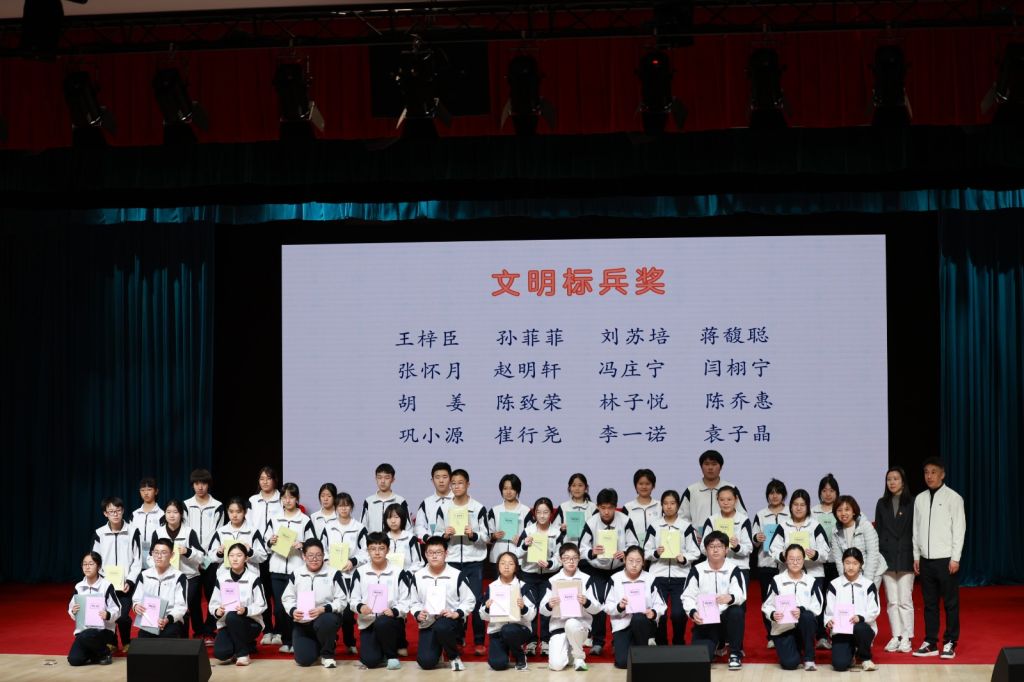 大会首先进行了学生表彰,颁发总分优胜奖、进步之星奖、文明标兵奖三大奖项。总分优胜奖的获得者们以扎实学识和稳定心态,成为学海中的领航者。樊颖副校长、蒋颖助理、尔红星助理为他们颁奖,对他们的卓越表现给予高度肯定,勉励他们再接再厉、勇攀高峰;获得进步之星的学子们虽曾陷入学习困境,却始终矢志追赶,用日进一寸的突破诠释奋斗的真谛,康琳主任、鲍艳琪老师、张淼老师为他们颁奖,用温暖而坚定的目光传递信任与期许;获得文明标兵称号的同学们以礼貌言行、责任担当,展现着育才学子的良好风采,孙晓英主任、刘欢主任、李晶老师为他们颁奖,赞许他们为全体同学树立起榜样。掌声与欢呼声在校园里久久回荡,榜样的力量为百日冲刺注入强劲动力。