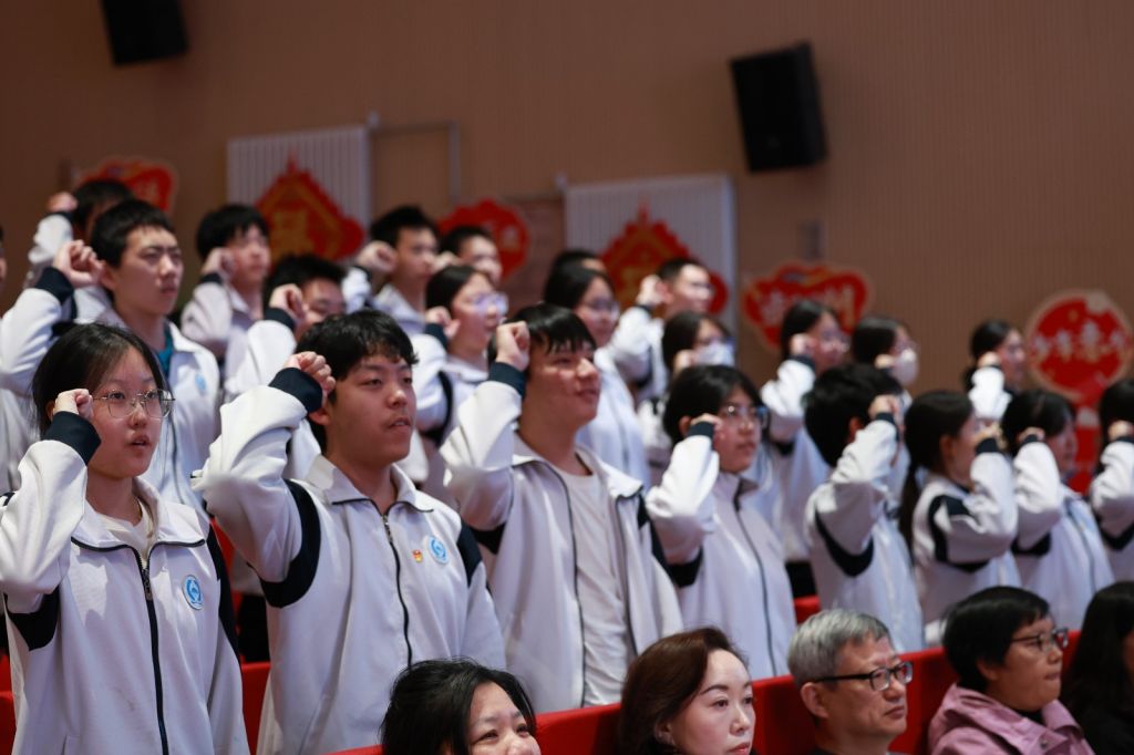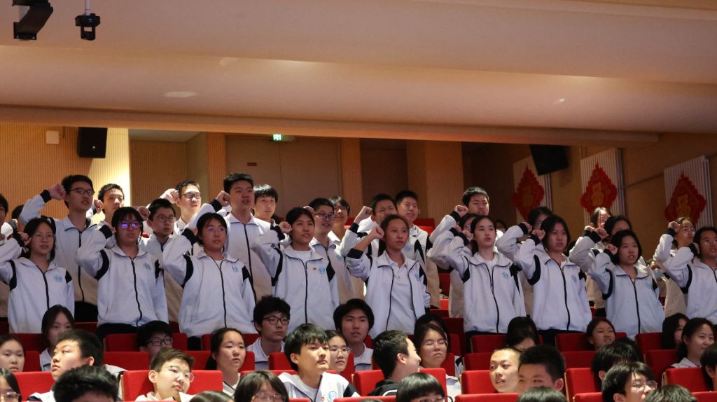 随后,学生代表吴雨凝、朱煜麒、朱煜麟、马琪瑄、仇嘉懿上台分享心声。他们以青春的名义,道出百日冲刺的决心:100天不仅是试卷分数的较量,更是青春蜕变与少年担当的彰显。他们号召同学们携手并肩,以包容消解争执,以鼓励替代攀比,于学习中互帮互助,在困境中彼此支撑,以少年合力共绘青春华章。